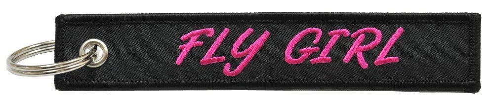 Say goodbye to passe "Remove Before Flight", or soft wimpy key chains, and hello to our own original line. Bold and contemporary, "FLY GIRL" is the latest, featuring raised embroidered lettering on both sides of a stiff, durable, merrow bordered material. Its measures 5 1 2" x 1" and includes a large steel ring for all types of keys.